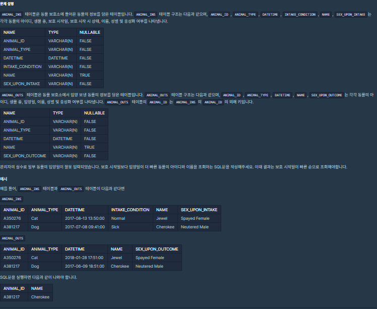 ins에 해당하는 입양일이 outs보다 빠른 경우를 join on의 on 조건에 넣으면 됩니다. (on에서 처리하면 두 테이블을 처음 조회할 때 연산이 되기 때문에, where에서보다 프로시저가 빠릅니다. 성능상 먼저 쓰는 것을 권해 드립니다.)